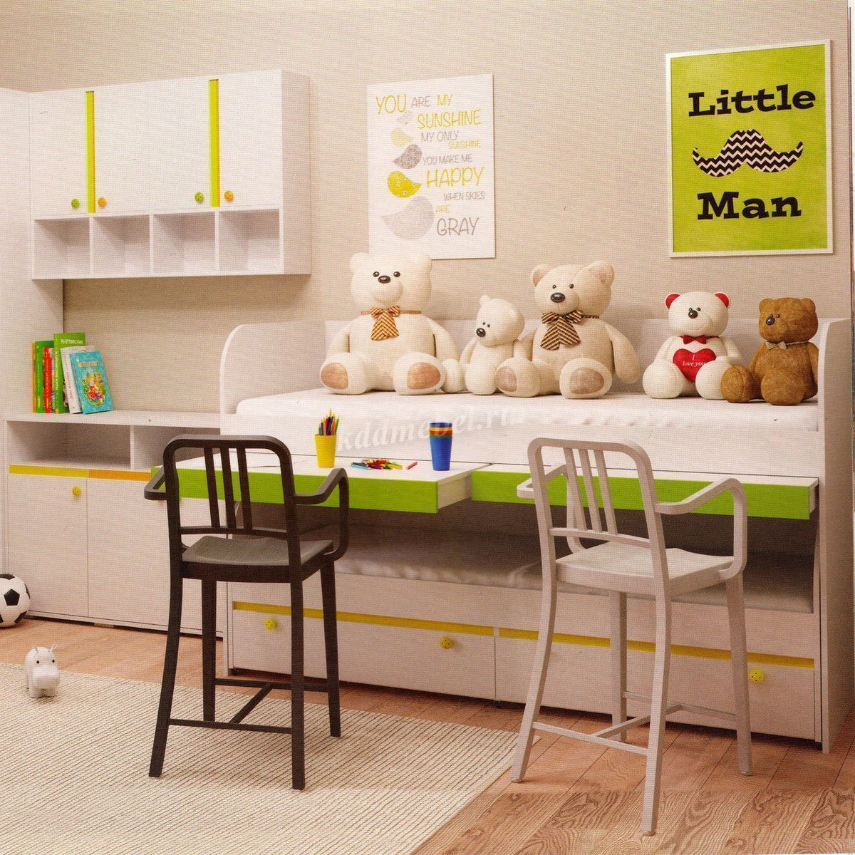Кровать-стол двухъярусная Мамба (Белый/Зеленый) наличие товара: