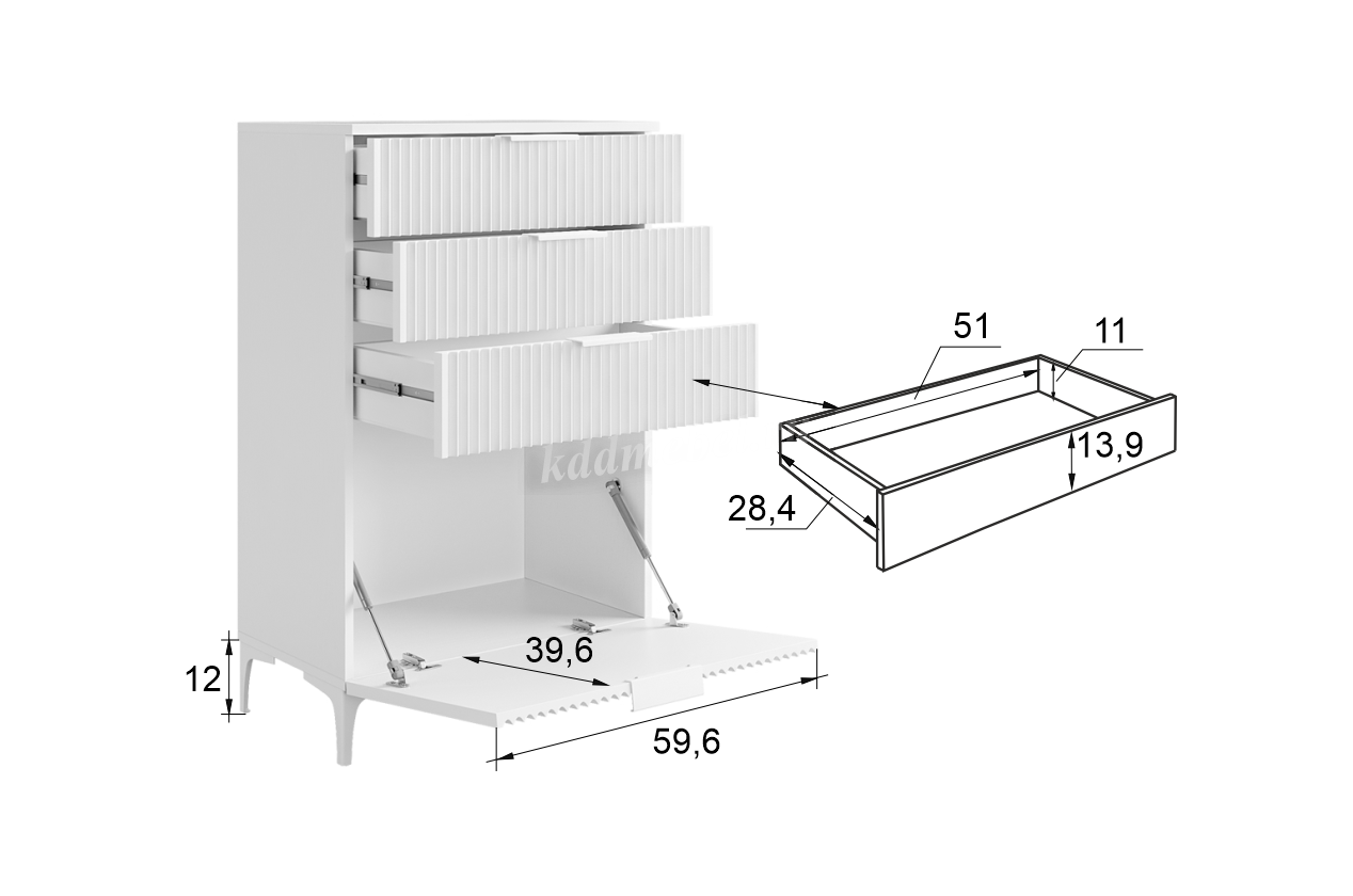 Зефир Комод (белое дерево/серый (эмаль)) - 1 шт.