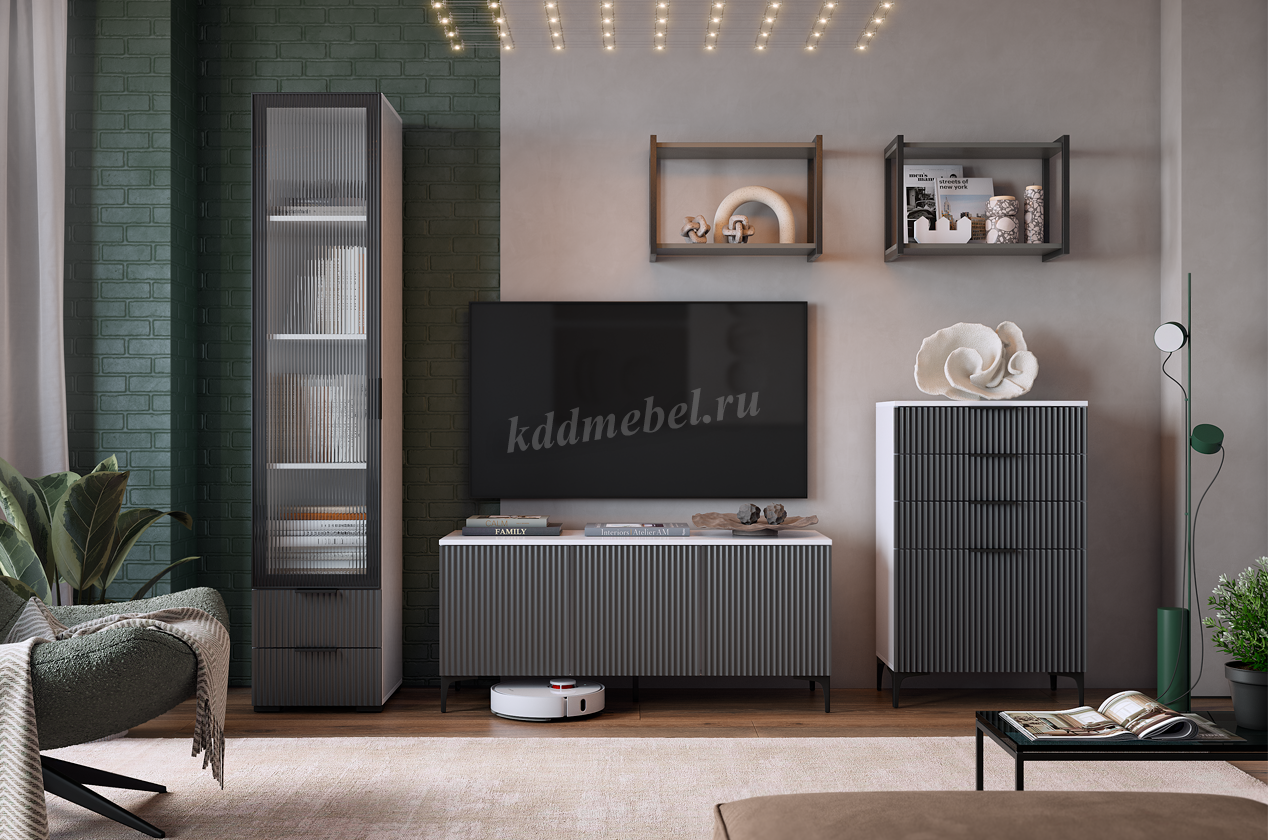 Описание Гостиная Зефир К2 (Белое дерево/Черный муар/Серый/Графит)