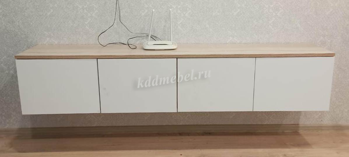 Подвесная тумба с двумя выдвижными, двумя дверками и скрытым навесом.