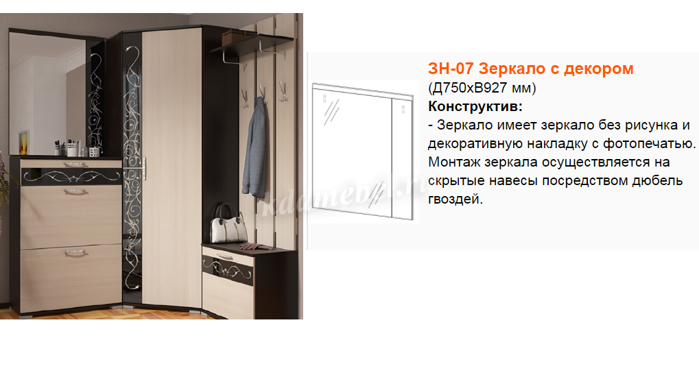 Описание Зеркало Юнона-2 ЗН-07 (Венге/Дуб молочный)