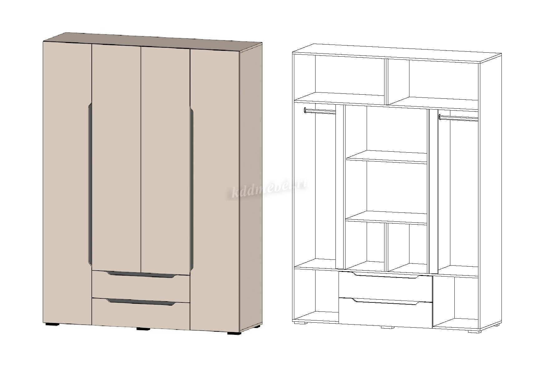 Шкаф Британа 4-х створчатый (Кашемир) наличие товара: