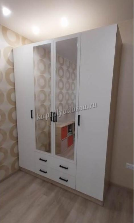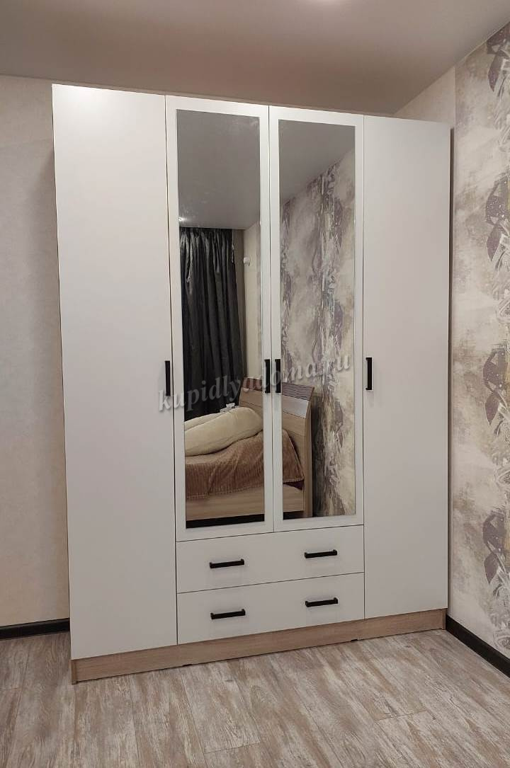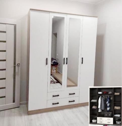 Вместительный четырехдверный шкаф "Нарцисс-3"с зеркальными фасадами — оптимальное решение для хранения одежды в спальне или прихожей. Изящное исполнение в лучших традициях стиля украсит интерьер и принесет в него уютные нотки. Внутреннее наполнение шкафа предусматривает просторные универсальные отделения для хранения белья и одежды. Посередине расположена платяная секция со штангой для вешалок, а по бокам находятся два отдела с полками.