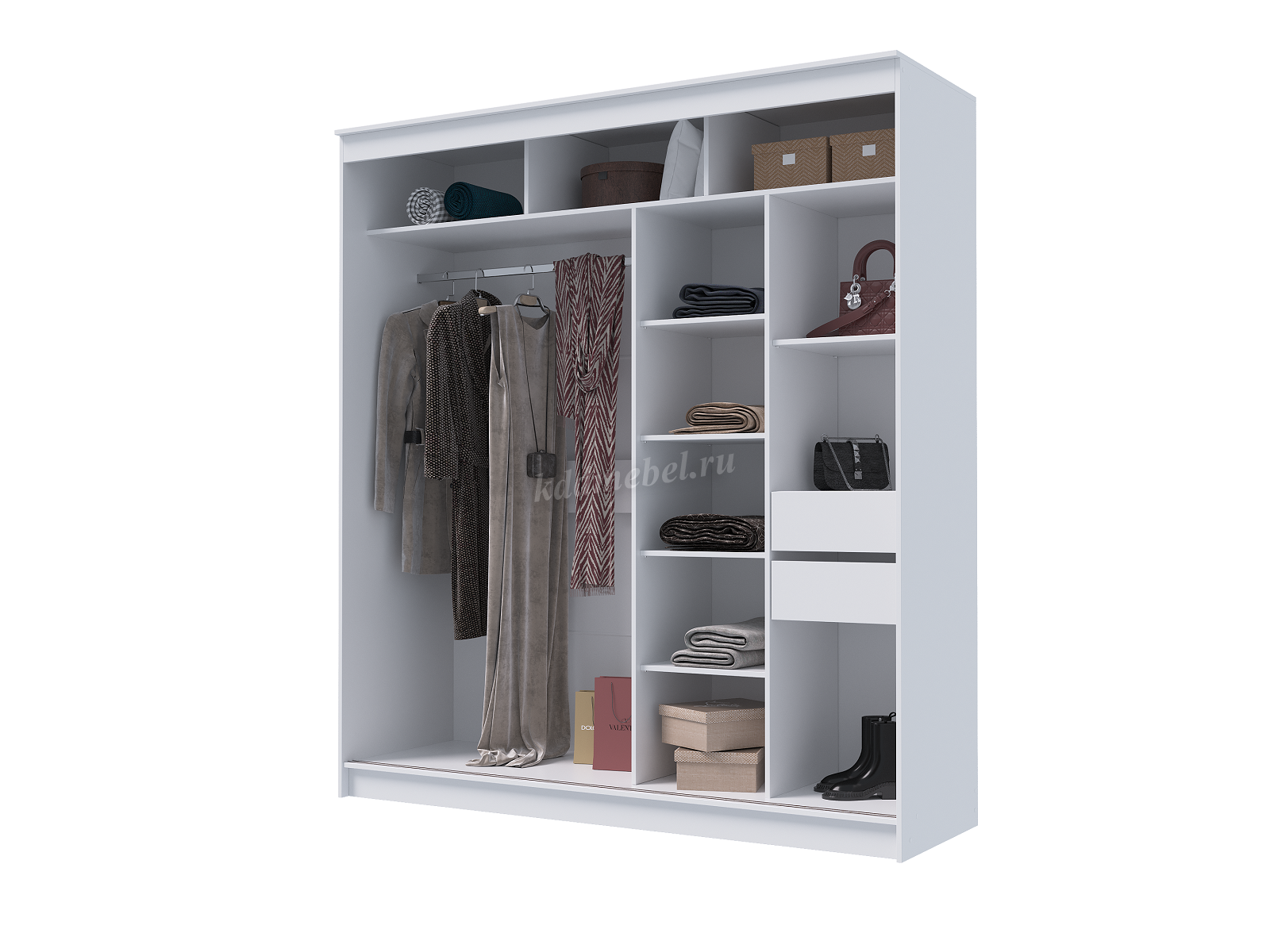 Удобный и вместительный шкаф-купе благодаря необычному дизайну хорошо подойдет интерьеру в любом стиле.