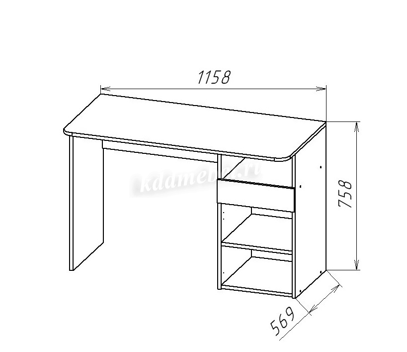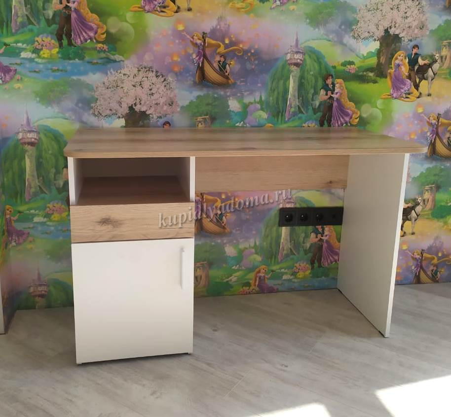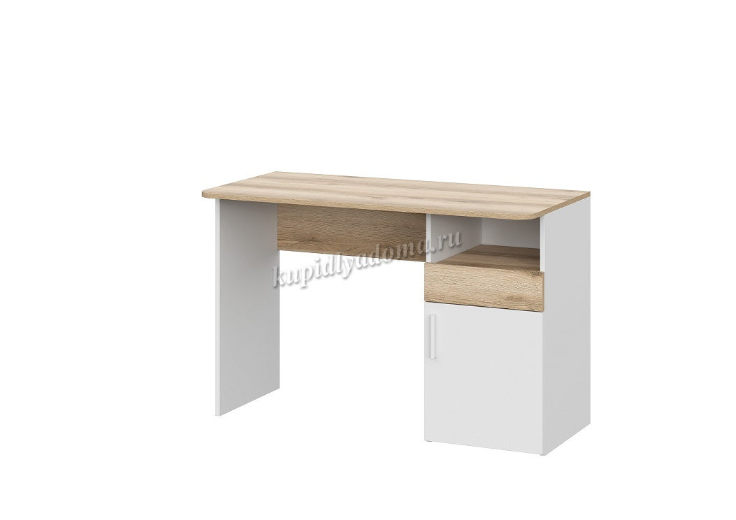 Стол письменный. Дверка, внутри полка, ящик (Направляющие НПВ шариковые, без ручки) и ниша. Ручка пластик, белая