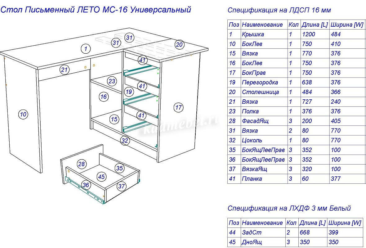 Описание Стол письменный Лето МС-16 (Цемент светлый)