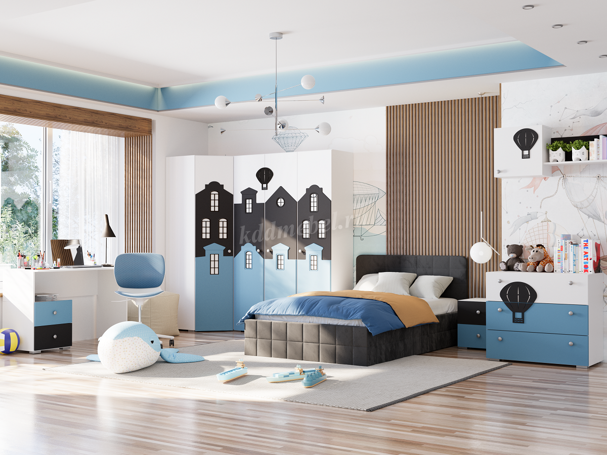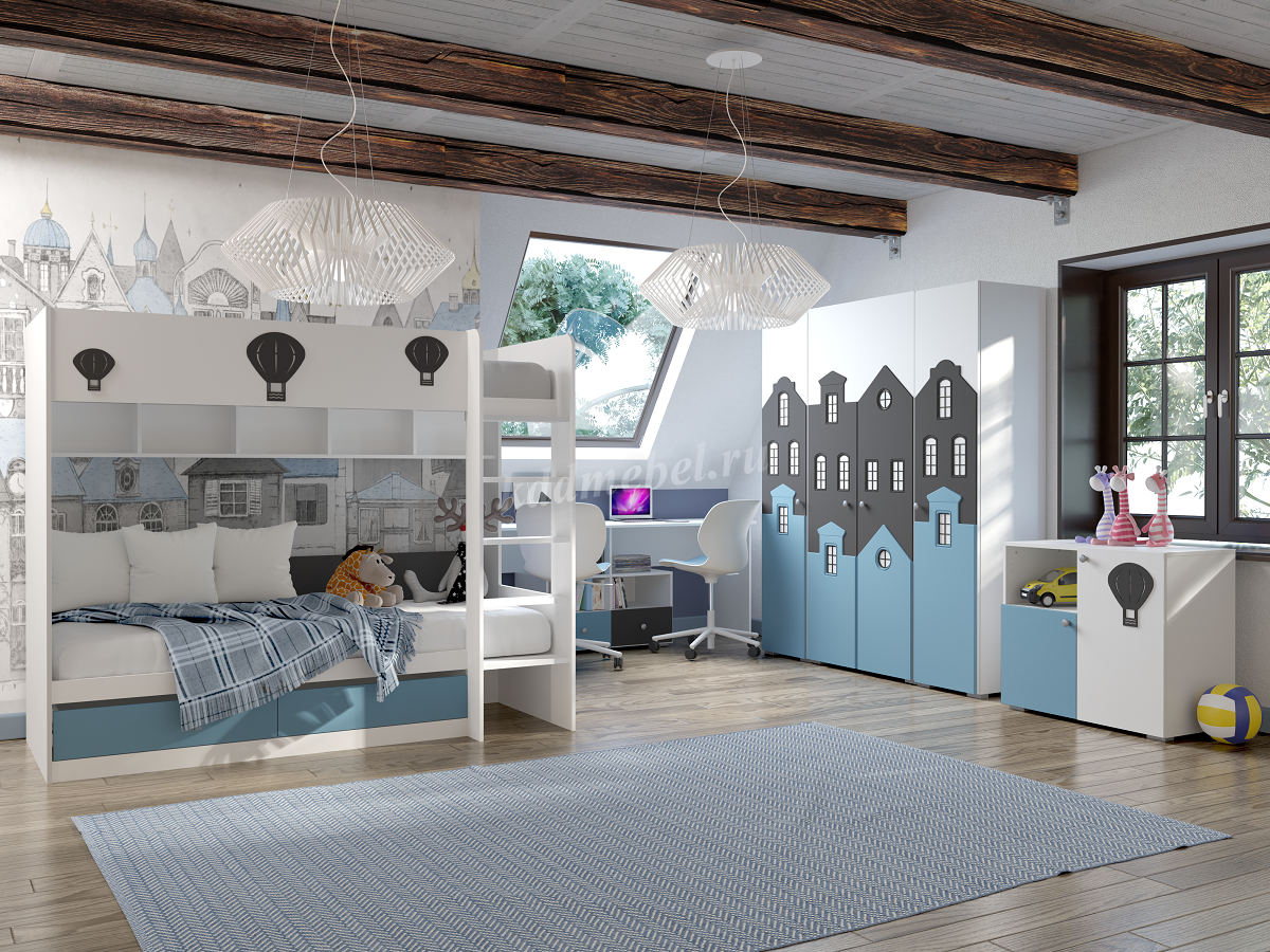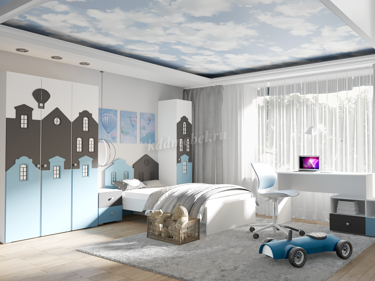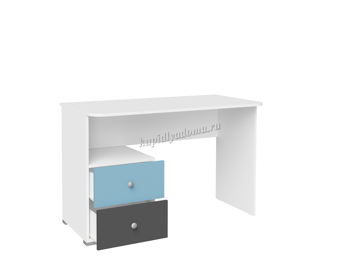 Стол письменный Сити с ящиками 332.08 (Белый/Графит софт/Голубой) наличие товара: