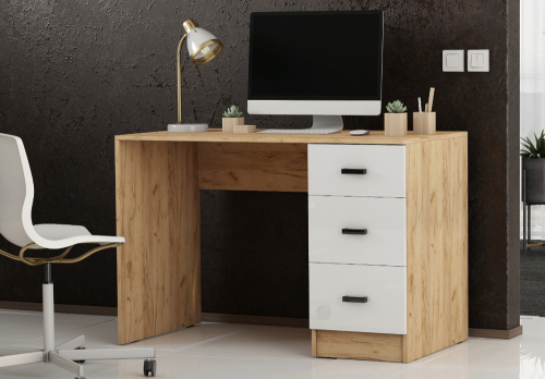 Письменный стол является образцом классического стиля, где главным критерием является удобство и функциональность. Стол имеет три ящика для хранения необходимых вещей под рукой. Современный дизайн гармонирует с превосходными цветовыми решением