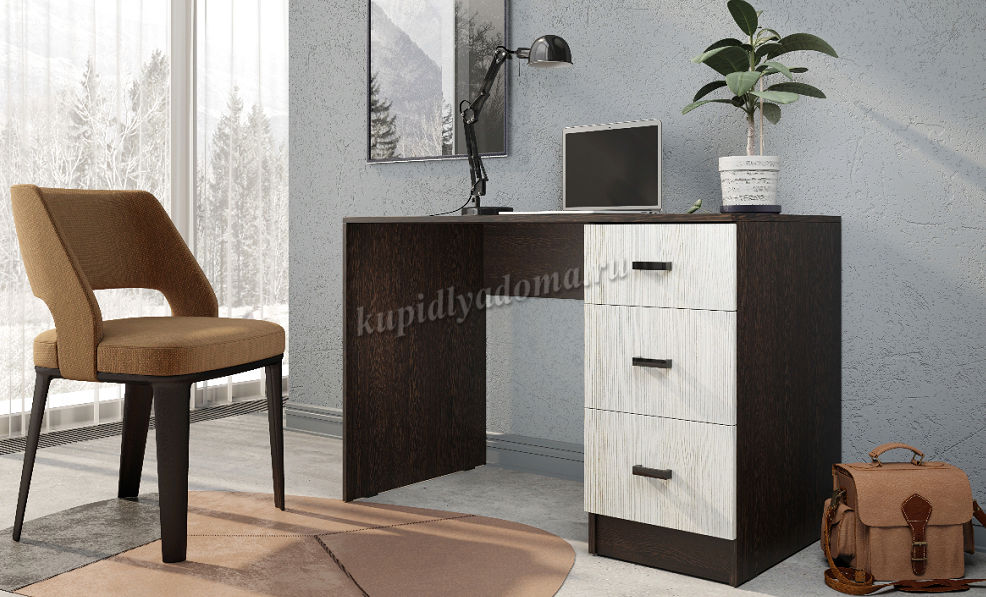 Письменный стол является образцом классического стиля, где главным критерием является удобство и функциональность. Стол имеет три ящика для хранения необходимых вещей под рукой. Современный дизайн гармонирует с превосходными цветовыми решением