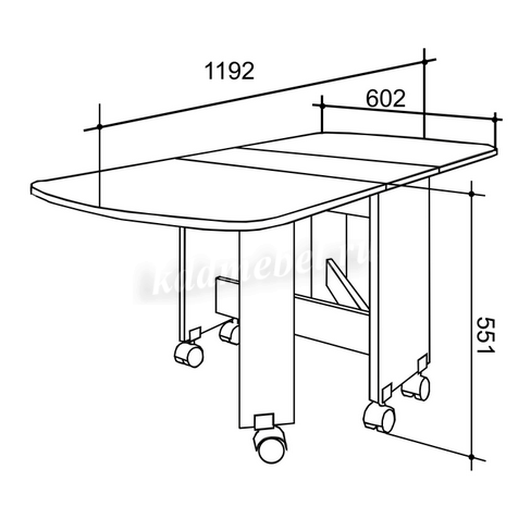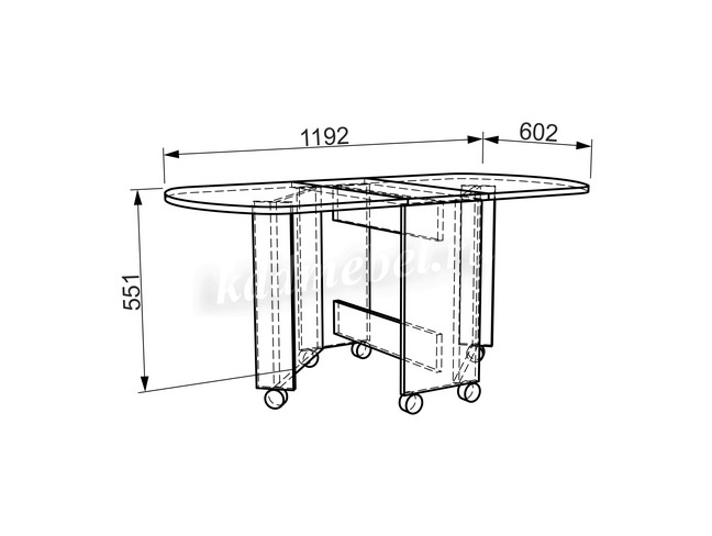 Состоит из: раскладного стола на колесных опорах. Изделие симметричное
