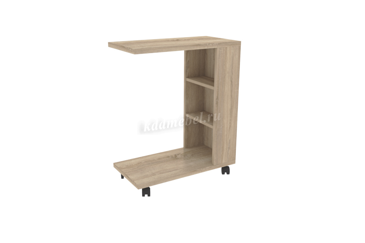 Состоит из: стола с 2-мя полками, на колесиках. Изделие симметричное.